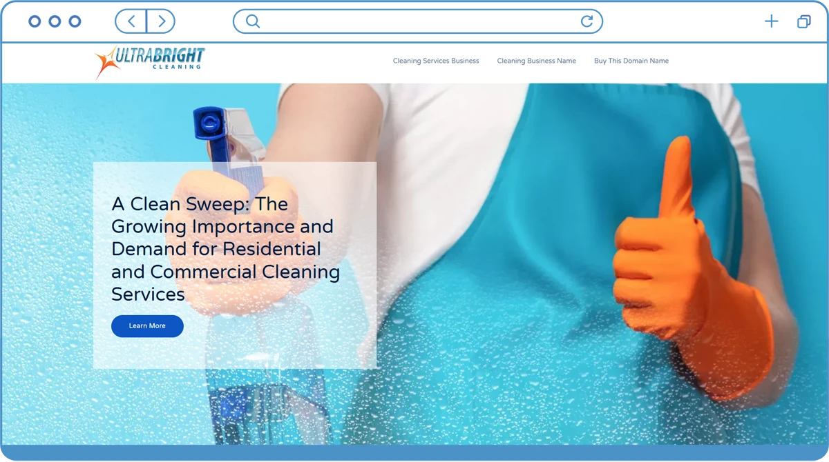 The website UltraBrightCleaning.com is owned by Budo Creative and is currently up for sale.